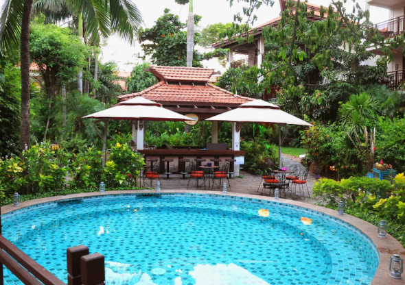 가든풀이 그늘로 되어있어 사람이 많고, 객실은 크고 관리가 잘되어있음. 어린이 동반객 추천