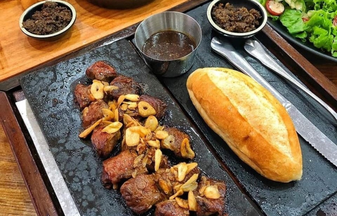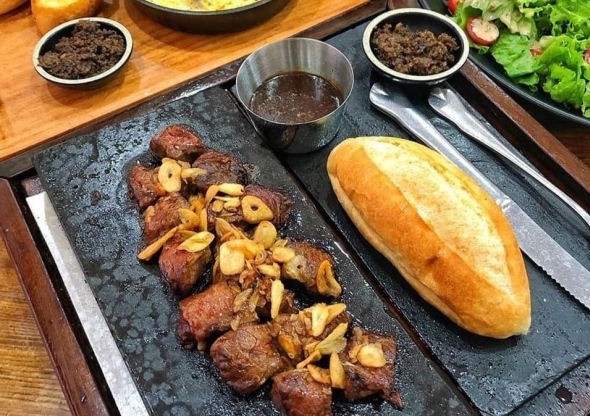가성비 스테이크 집으로 사람이 많아요. 내부가 좀 붐비고, 기름진 편입니다.