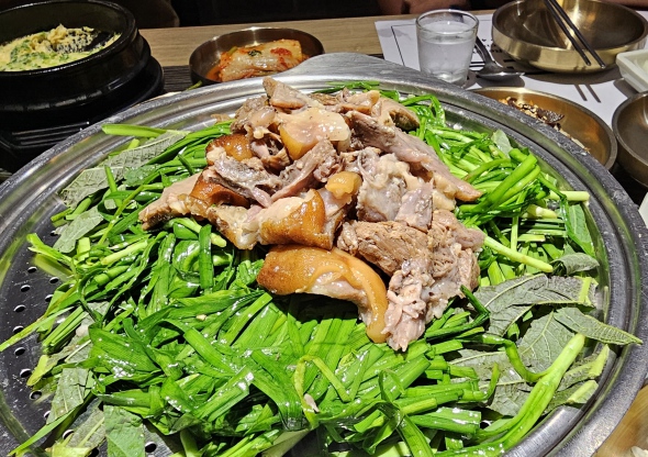 오픈한 지 조금 된 식당이지만 실내가 깨끗하게 잘 관리되어 있음. 반찬뿐만 아니라 메인요리 하나하나가 퀄리티가 굿. 솥뚜껑에 구워먹는 방식이라 한국이 생각남. 푸짐하고 질도 좋고!