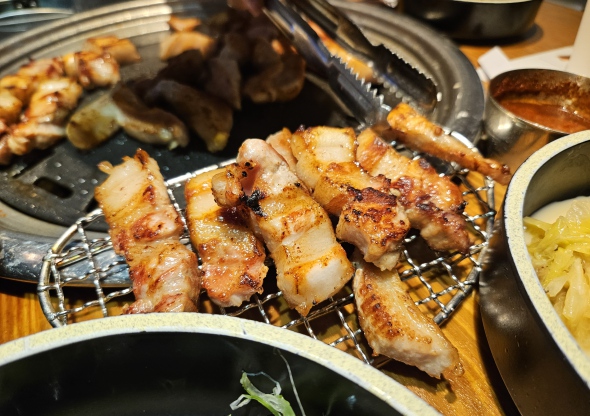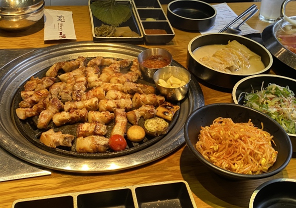 사람이 엄청 붐비지 않고, 합리적인 가격에 퍽퍽한 맛이 하나도 없고 기름지지 않은데 고소한 식감인 삼겹살을 ? 밥도 솥밥으로 나와 한국이 생각나는 맛.