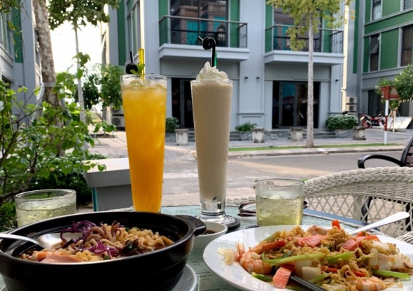 로컬 카페로 가격이 저렴하고 현지 분위기를 느낄 수 있음. 커피, 밀크티, 코코넛 커피 등 음료가 맛있고 환영 차를 제공해 더위에 좋음. 흡연 구역이 있어 담배 냄새에 민감한 사람들에게는 비추천. 시설은 다소 낡고 벌레가 많지만 직원들은 친절하고 정리도 잘해줌. 현지인들이 주로 이용하며 영어는 잘 통하지 않으나 기본적인 소통은 가능. 테이블에 작은 개미가 보이기도 하며 청결 상태는 아쉬운 편.