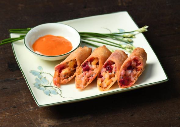 그린커리, 춘권, 구운가지, 버섯튀김